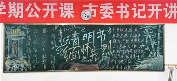 清明节前夕,我校充分利用校内多个宣传平台,宣传革命先烈的光辉事迹,对师生进行充分的革命传统教育。各班相继召开“缅怀英勇先烈,弘扬革命精神”主题班会,了解了清明节的由来,重温了革命先烈的英勇事迹,坚定了同学们发扬革命传统,继承烈士遗志的决心和信心。在清明节来临之时,每个班级都出了一期有关缅怀先烈的板报,营造良好氛围。