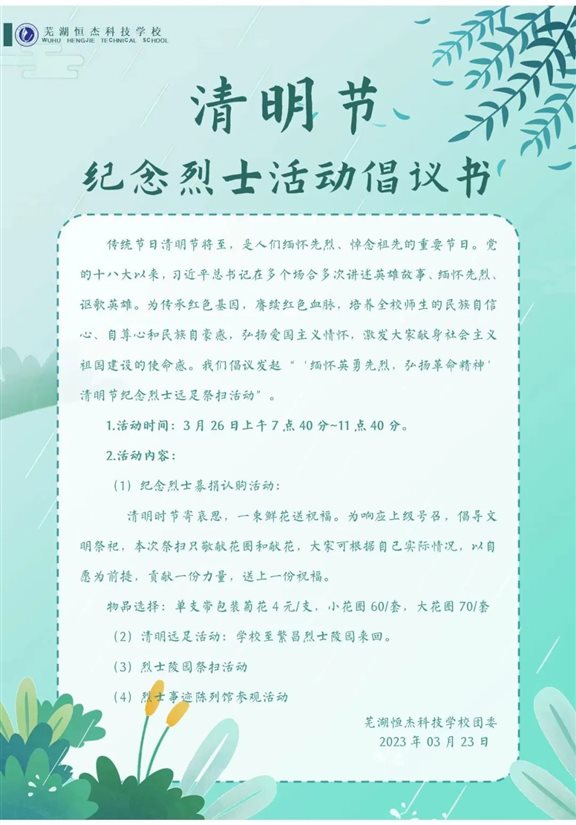 我们的节日·精神的家园—清明 | 芜湖恒杰科技学校举行清明节主题实践活动