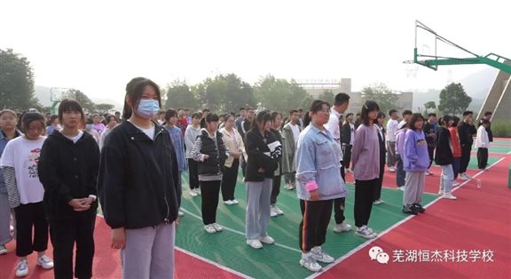 2020年10月12日上午8时,在我校篮球场举行本学期第三次升旗仪式。全校师生参加了本次升旗仪式。