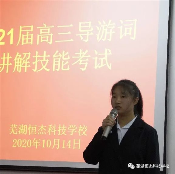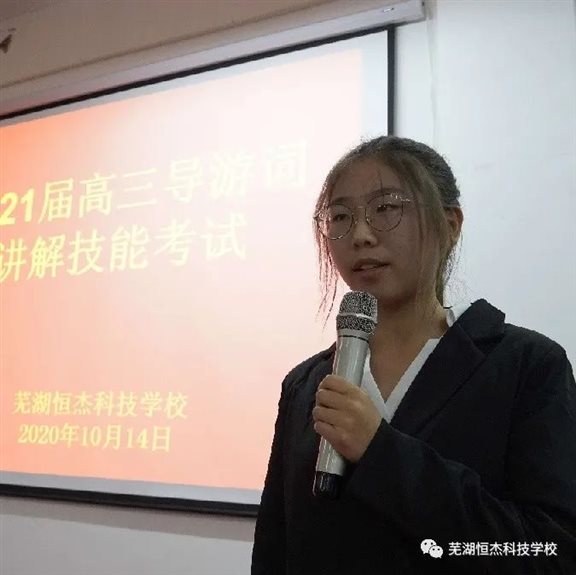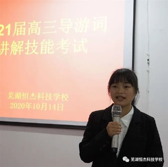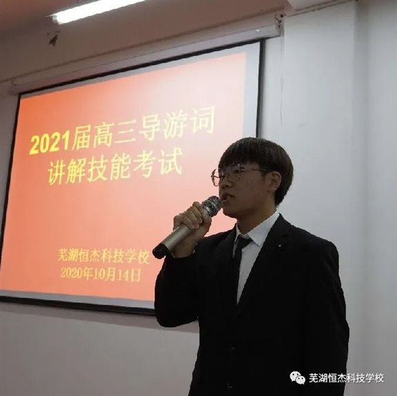 2020年10月14日晚,由我校教务处组织的高三旅游班导游词讲解考试如期在三楼报告厅举行。