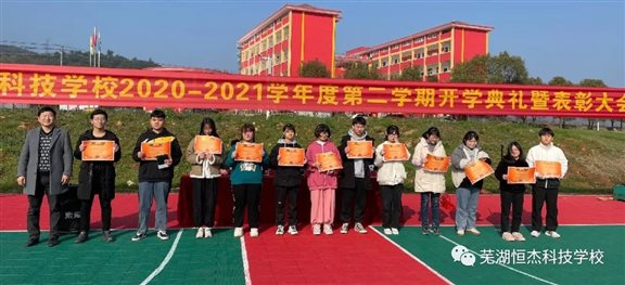 伴着初春的脚步,迎着和煦的春风,2021年3月14日芜湖恒杰科技学校全体师生在操场上举行春季开学典礼。典礼现场学生们个个意气风发,老师们人人神采飞扬,饱含着对新学期的美好憧憬和向往。