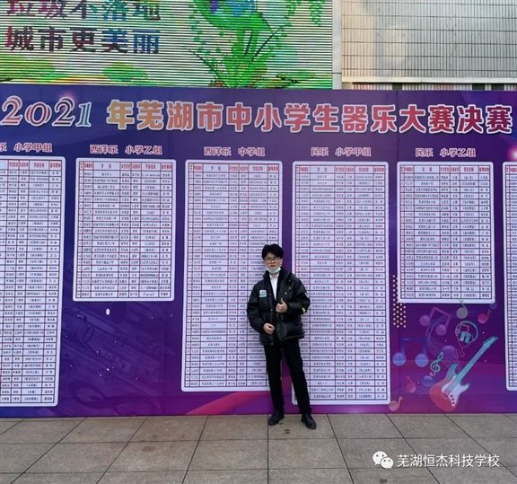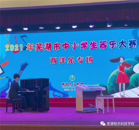 在2021年芜湖市中小学生器乐大赛中,我校周子阳、薛凯两名同学参赛,周子阳同学获得中学组西洋乐二等奖,薛凯同学获得中学组西洋乐三等奖荣誉(指导教师:赵峰)。