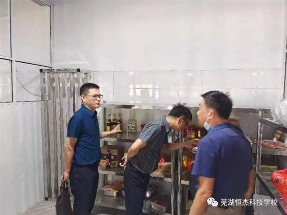 区教育局领导对学校的开学工作逐项进行了检查,不仅仔细询问了疫情防控、校园安全保障、教学常规、食品安全卫生、教学常规等开学工作情况,还实地查看了学校实训楼、餐厅、教学楼、防疫物资储备室等重点区域。